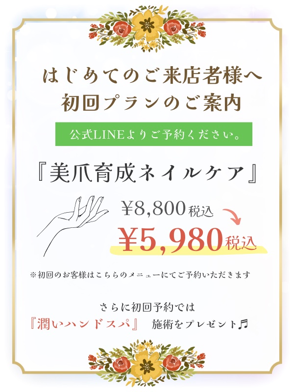具体的なホームケア「美爪になるケア方法」などもアドバイスさせていただきます。