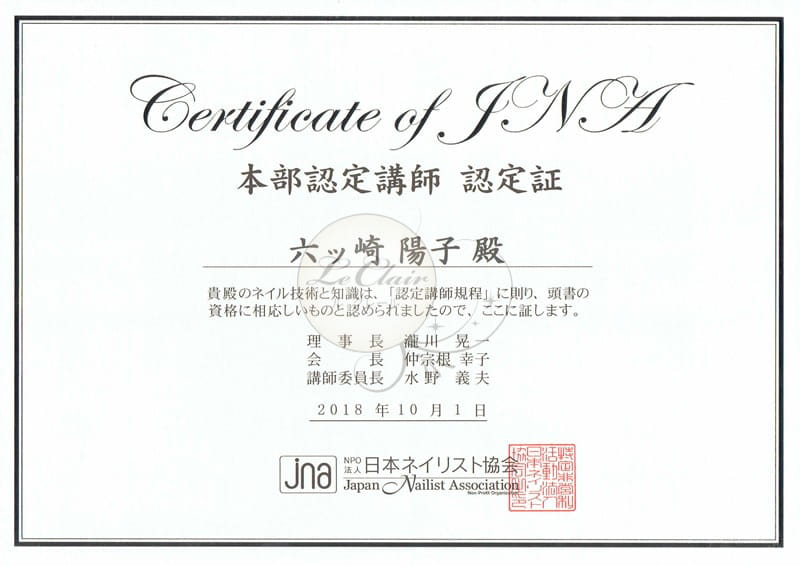 日本ネイリスト協会常任認定講師
