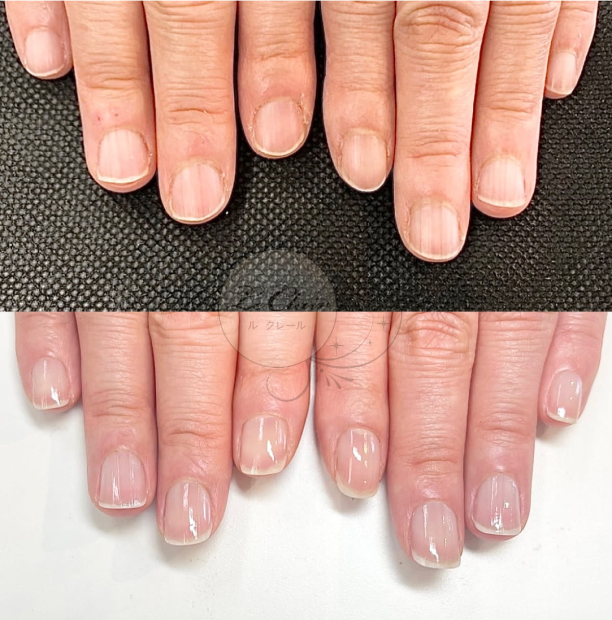 爪の形が整い、表面がなめらかになり、潤いと艶が増すことで、手元の印象がガラッと変わります。